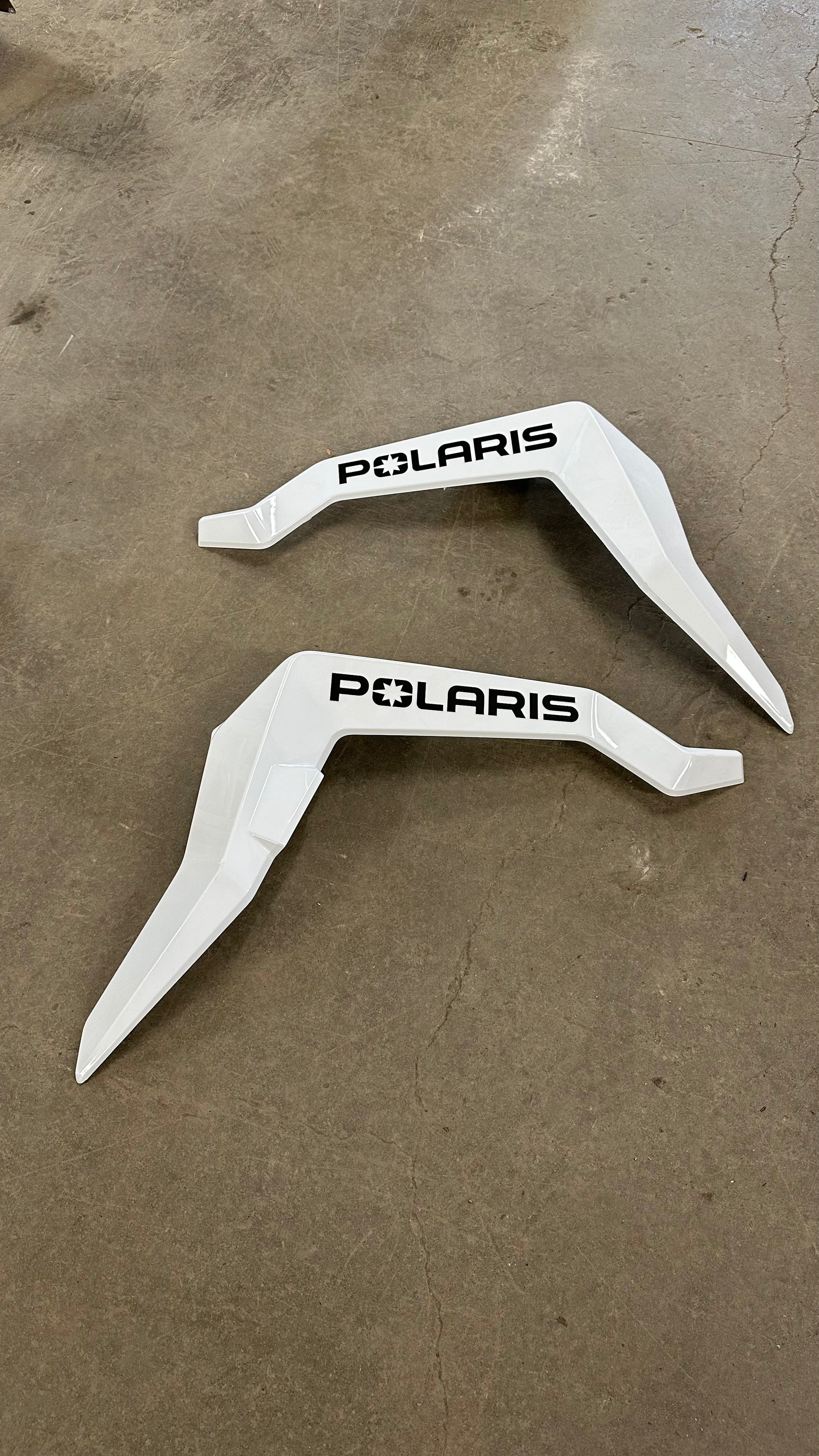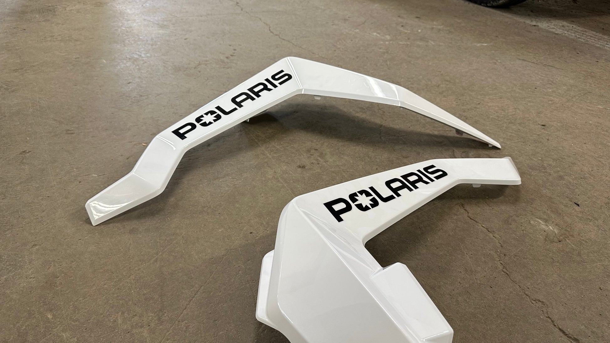 White upper side panel / boomerang pieces for Polaris Matryx sleds. These are trail versions. Less than 300 miles on these, super clean.